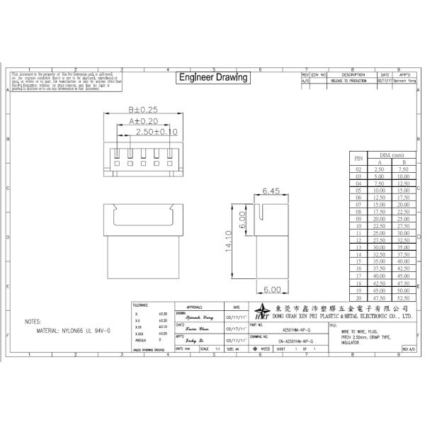 1. A2501 series housing A2501HM-NP(suitable A2501 series Terminal )